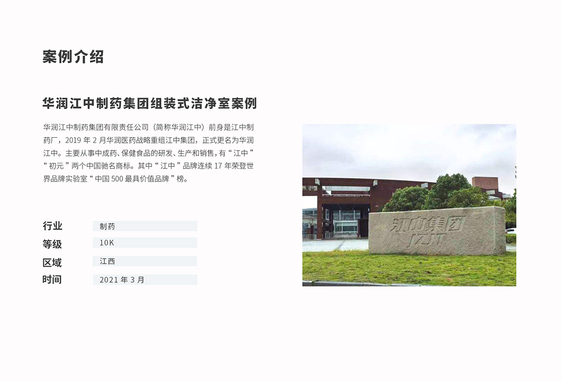 江西華潤江中制藥集團組裝式潔凈室案例
