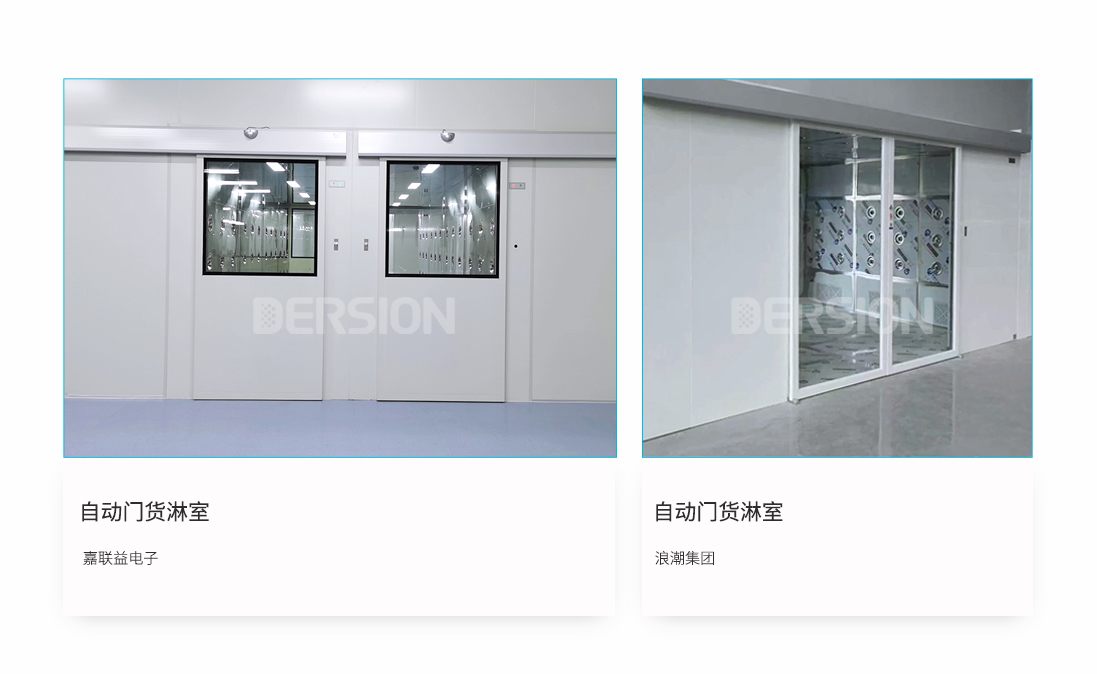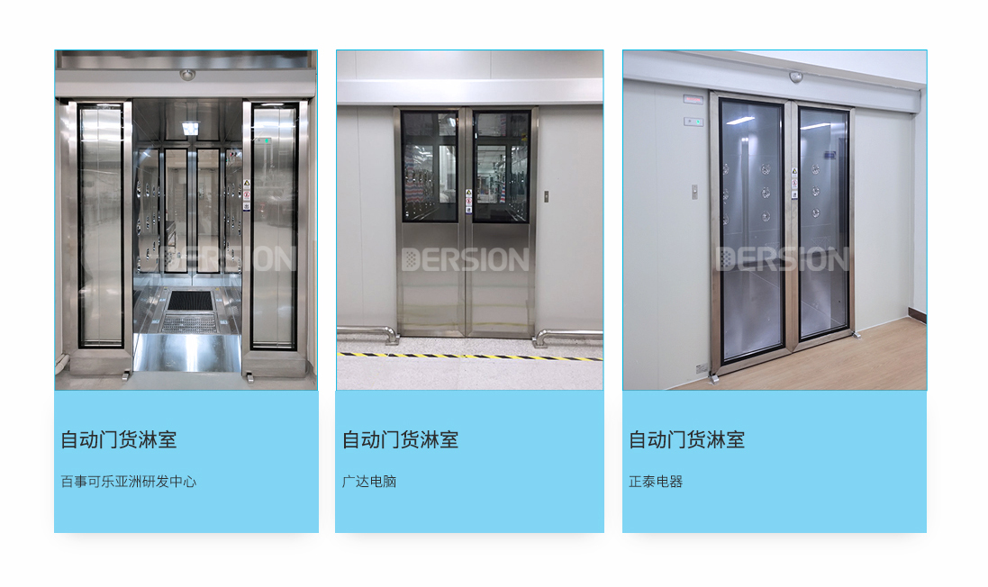 自動門貨淋室是一種通用性較強(qiáng)的局部凈化設(shè)備,安裝于潔凈室與非潔凈室之間,是貨物進(jìn)入潔凈室所需的通道。當(dāng)貨物進(jìn)入潔凈區(qū)時(shí)需經(jīng)貨淋室去除貨物所攜帶的塵埃,能有效的阻斷或減少塵源進(jìn)入潔凈區(qū)。貨淋室前后兩道門為電子互鎖,可起到氣聞的作用,阻止未凈化的空氣進(jìn)入潔凈區(qū)域。且可以作為不同等級潔凈室的緩沖室,防止貨物進(jìn)出時(shí)產(chǎn)生的交叉污染。